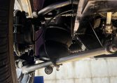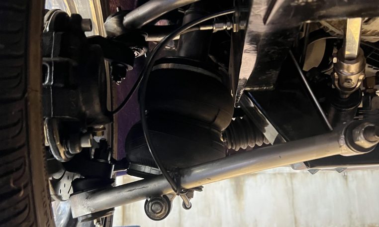 The car rides on adjustable Ridetech air suspension with the controller mounted in the center console, and the rear end is a four-link triangulated setup. Intro staggered 17″ and 18″ wheels, Kumho tires, power steering, and power-assisted four-wheel discs with drilled-and-slotted front rotors as well as stainless-steel lines were utilized. In November 2025 the brake fluid was changed.