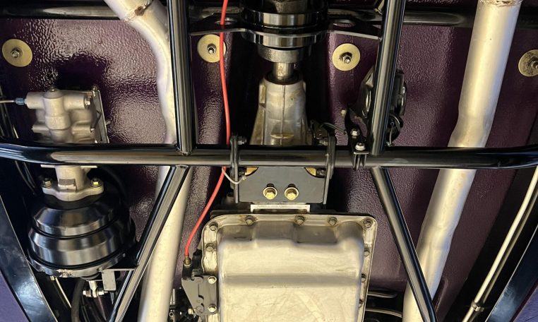 The 6.0-liter LS2 V8 was sourced from a 2005 GTO according to the selling dealer, who tells us it is linked to a 4L60 automatic and a Ford 9″ rear end with a limited-slip differential and 3.50 gears. The exhaust system has electrical cutouts, and a Rock Valley stainless-steel fuel tank was installed.