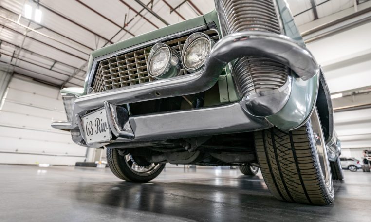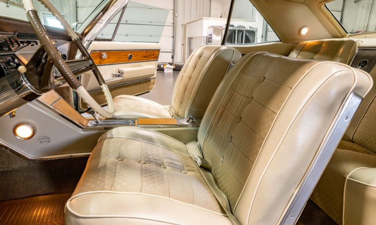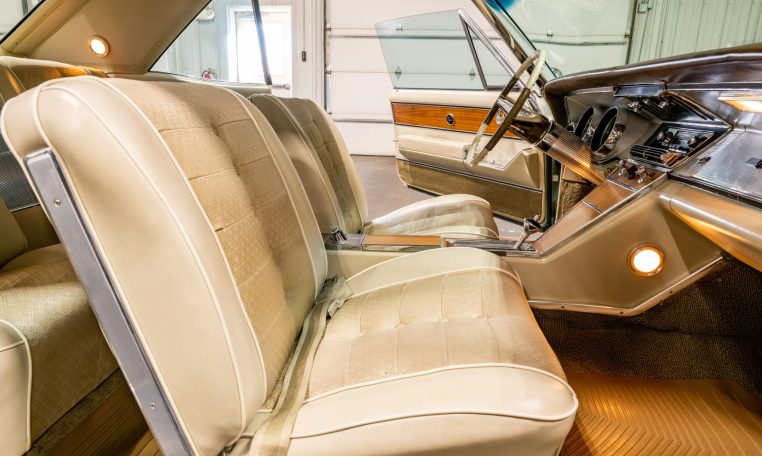 The 401ci “Wildcat 445” Nailhead V8 was factory rated at 325 horsepower and 445 lb-ft of torque when new, and it sends power to the rear wheels through a two-speed Turbine Drive automatic transmission