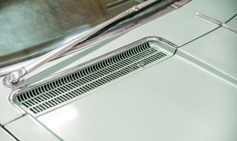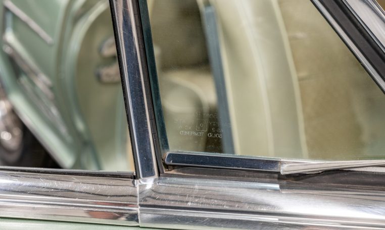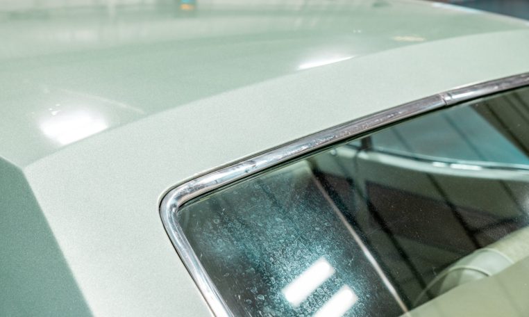 The body was refinished in its factory color of Willow Mist (JJ) during prior ownership ,we noted paint chipping on the edge of the driver’s door and quarter panel.