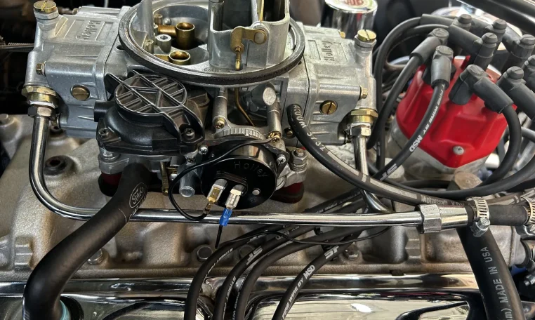 The 302ci V8 was rebuilt and installed ~10k miles ago according to the seller. It has an Edelbrock intake manifold, a Holley four-barrel carburetor, and MSD ignition along with a dress-up kit.