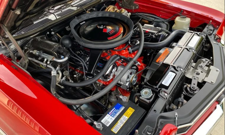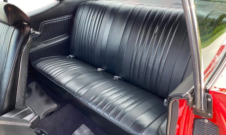 True Cranberry Red/black stripe/black vinyl top/black interior car with original quarter panels